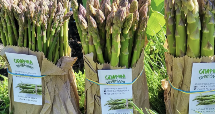 Вирощувати спаржу в господарстві почали ще у 2019 році — з невеликої ділянки у 15 соток, сьогодні ж площі насаджень перевищують 3 га. Вирощують кілька сортів: зелену класичну, Анжельтейську, Мері Вашингтон, фіолетову Расмус і сорт Бахус, який має салатовий відтінок.