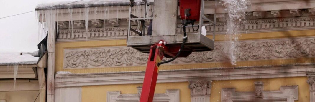 У Львові з минулого тижня тривають роботи з очищення дахів будинків від буруль та снігових нависань.
