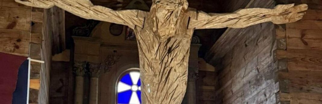 Зокрема, у храмі експонують масштабне дерев’яне розп’яття авторства Володимира Семківа, а також символічні та задумливі хоругви Юлії Семків.