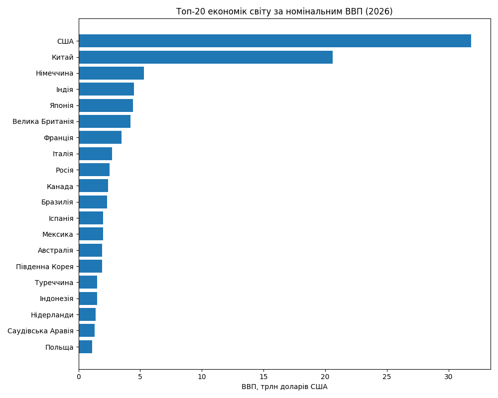 Найпотужніші економіки у 2026 році за номінальним ВВП: