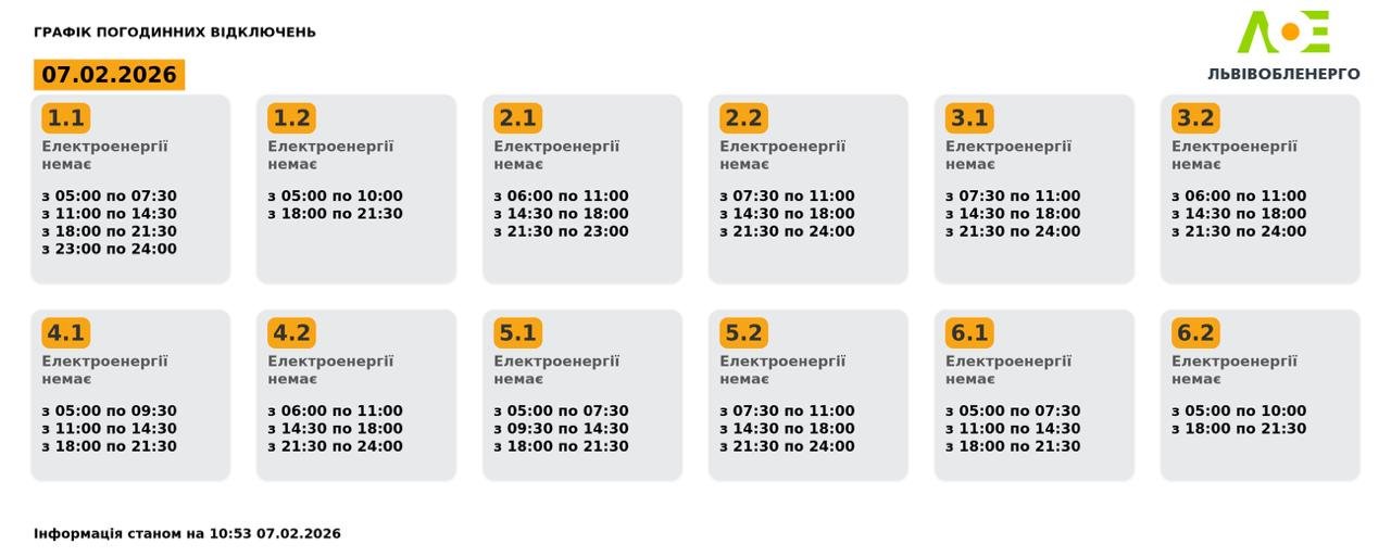 У суботу, 7 лютого, у Львові та області застосовуватимуть оновлені графіки відключення світла.