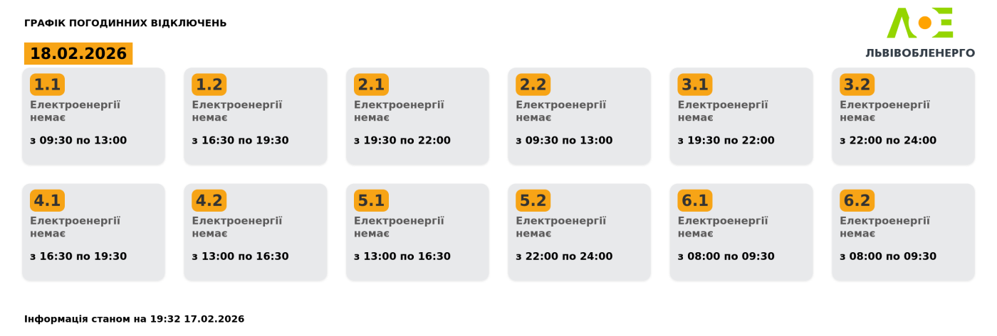 У Львові та області оприлюднили графіки відключення електроенергії на 18 лютого.