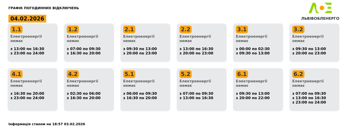 Графік погодинних відключень на 04.02.2026