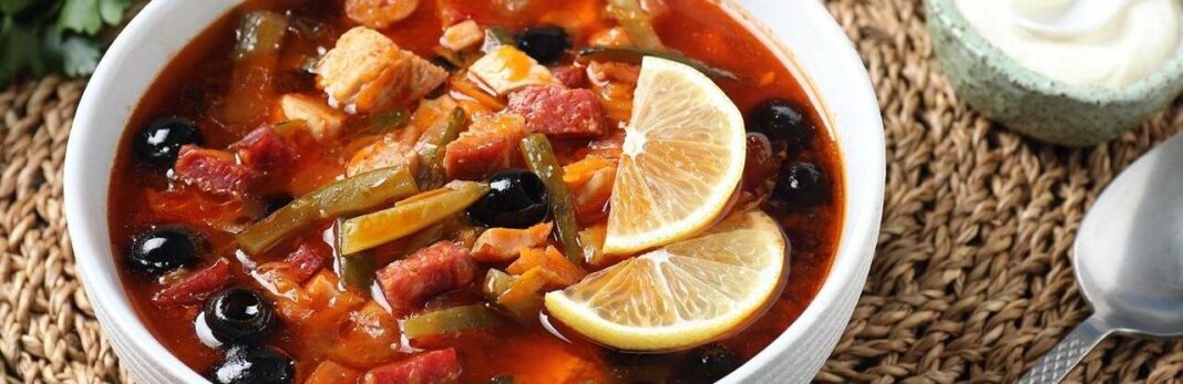 Солянка — це густий, насичений суп із яскравим кисло-солоним смаком.