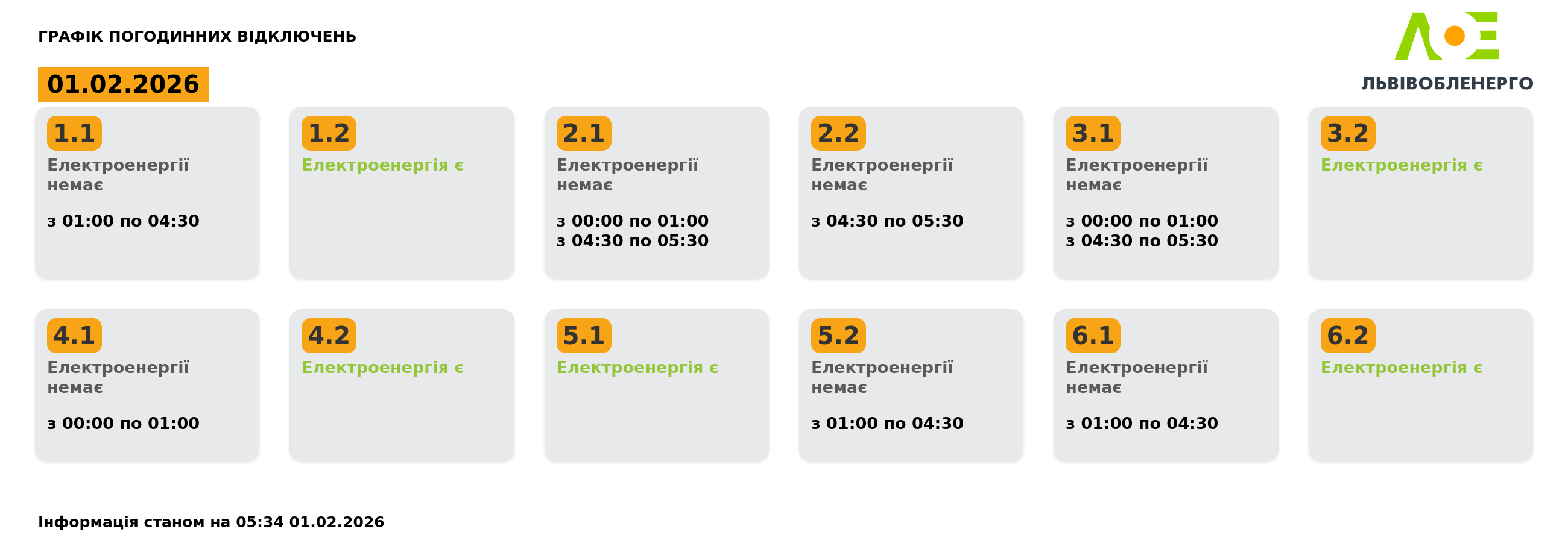Львівобленерго опублікувало оновлені графіки відключень світла на 1 лютого.