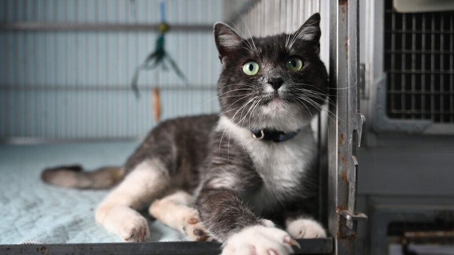 Пораненого безпритульного кота, якого назвали Василем, знайшли на вулиці Львова. Виявилось, що в тварину двічі стріляли: кулі застрягли у хребті і паралізували задні лапи кота.
