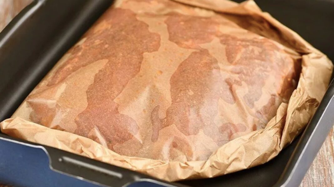 - Перекласти на пергамент, щільно загорнути, щоб утворився герметичний пакет.