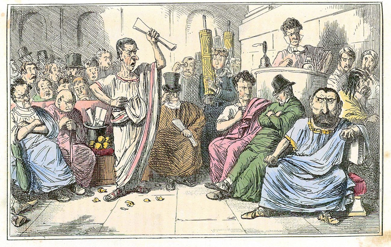 Ціцерон виголосив промову в римському сенаті 7 листопада 63 року до н.е., публічно викривши змову Луція Сергія Катіліни проти Римської республіки. Ця ораторська майстерність стала зразком класичної риторики та вплинула на розвиток ораторського мистецтва протягом тисячоліть.