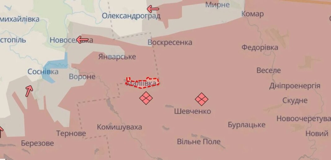 Моніторинговий проєкт DeepState повідомив, що російська армія окупувала село Маліївка на Дніпропетровщині. Також ворог просунувся поблизу Новоіванівки, Вороного, Охотничого та Білої Гори.