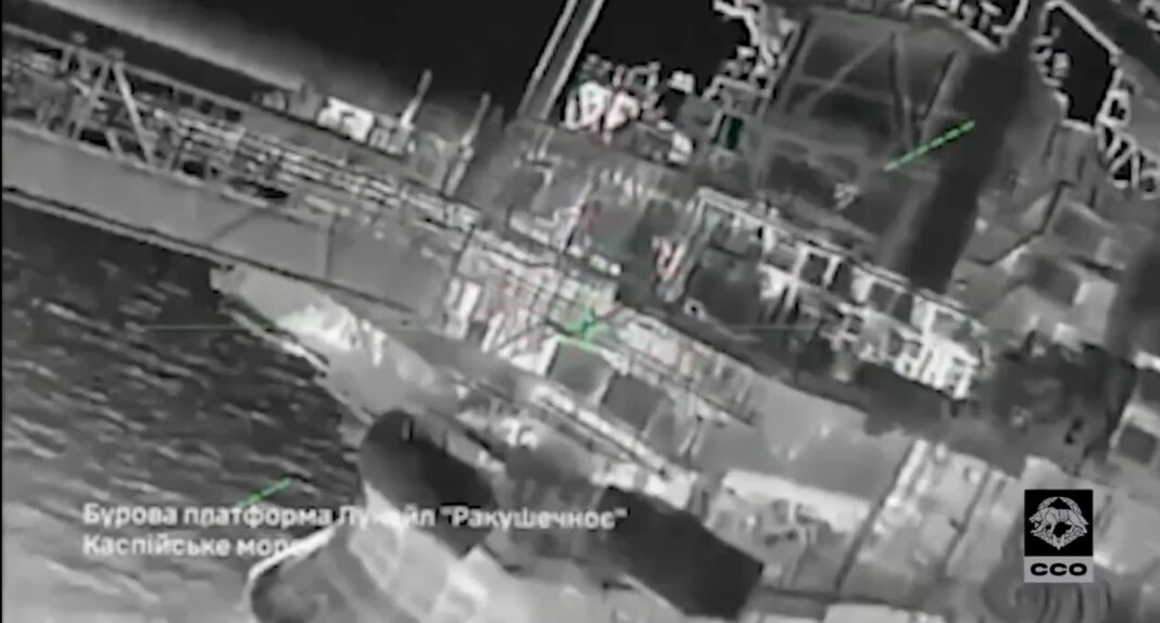 Безпілотники ССО поцілили у льодостійкі платформи на родовищі "імені Грайфера" (колишнє родовище "Ракушечноє") та на родовищі "імені Корчагіна" у північній акваторії моря приблизно за тисячу кілометрів від лінії фронту