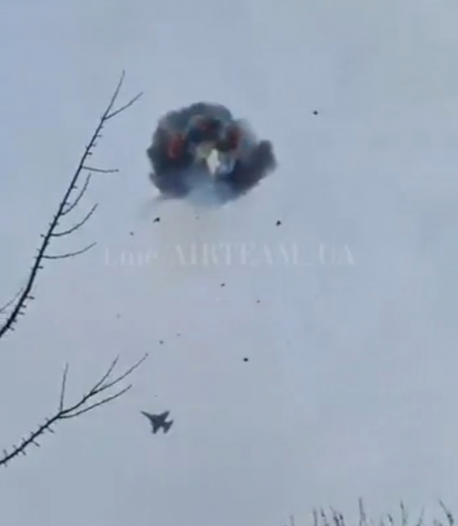 Мабуть, це моя некомпетентність і, як наслідок, нездатність аналізувати цю війну. Те саме питання виникає, коли дивишся відео, де український пілот F-16 використовує гармату M61A1 Vulcan, щоб збити російський безпілотник "Герань" (кадр з відео нижче), і читаєш повідомлення, що більшість українських батарей MIM-104 Patriot і SAMP-T простоювала впродовж останніх двох тижнів. Все тому, що у них вичерпався боєзапас…