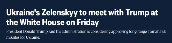 Історія з ракетами "Томагавк" – лише найсвіжіший із таких випадків. Наступного дня після того, як Трамп заявив, що може надіслати Україні "Томагавки", Зеленський написав, що отримання підтримки для "спроможностей дальнього ураження" є ключовою частиною його вашингтонського порядку денного.
